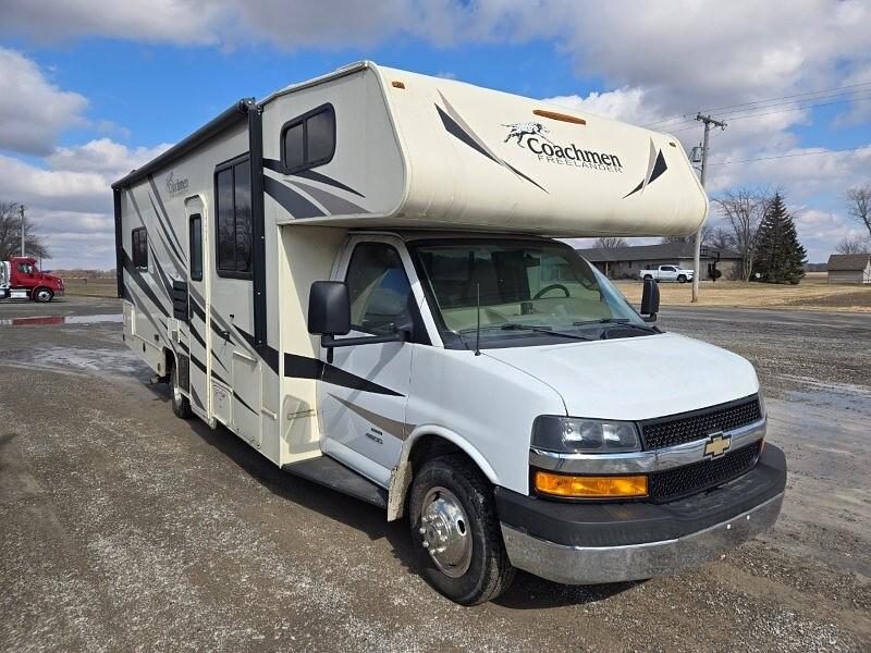 2020 Coachmen Freelander 27QB, 30’0”, No Slides, 6.0L V8 Chevy, Chevy 4500 Chassis, 4,000 Watt Onan Gas Generator, PS, Dash Air, Cruise, Tilt, Touchscreen Radio, Back-Up Camera, Rear Ladder, 1 Ducted AC Roof Unit, 30,000 BTU Furnace, 6 Gallon Gas Water Heater, Monitor Panel Night Shades, Flat Screen TV, 3 Burner Stove, Oven, Microwave, Upper/Lower Fridge & Freezer, Double Sink, Booth Dinette, Jackknife Sofa Bed, Cabover Bunk, Vanity Counter, Shower, Queen Island Bed, Sleeps 8, Power Patio Awning, Tan Interior, Dark Wood, Tan Exterior, 19,411 Miles