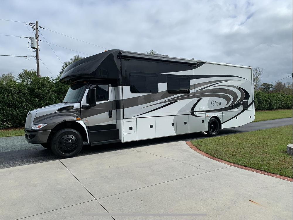 Meticulously maintained Super C overcab motorhome. Bought new by us. Cummins diesel engine with 360 HP and 900 torque, featuring smooth air ride suspension.