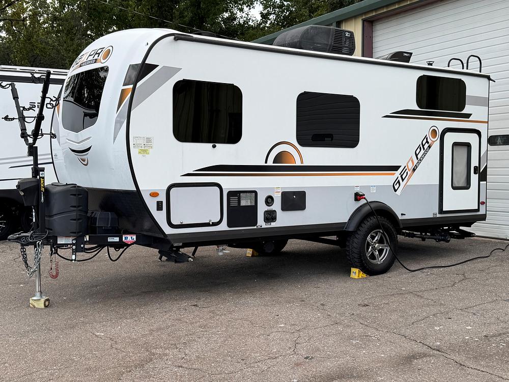 The 2021 Forest River Rockwood Geo Pro G19BH is a top-of-the-line travel trailer that is sure to impress even the most discerning outdoor enthusiast. With its sleek design and modern amenities, this model is perfect for those looking to enjoy the great outdoors in style. The Forest River Rockwood Geo Pro G19BH features a spacious interior with plenty of room for sleeping, dining, and relaxing. The kitchen is equipped with all the essentials, including a stove, microwave, and refrigerator, making it easy to whip up delicious meals while on the road.