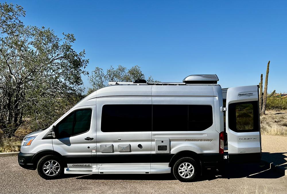 Quality Pleasure Way product, 19 feet, eco Boost gas engine on Ford Transit chassis. Fully equipped. Post 2021.5 with large screen. Well serviced with new Michelin tires.