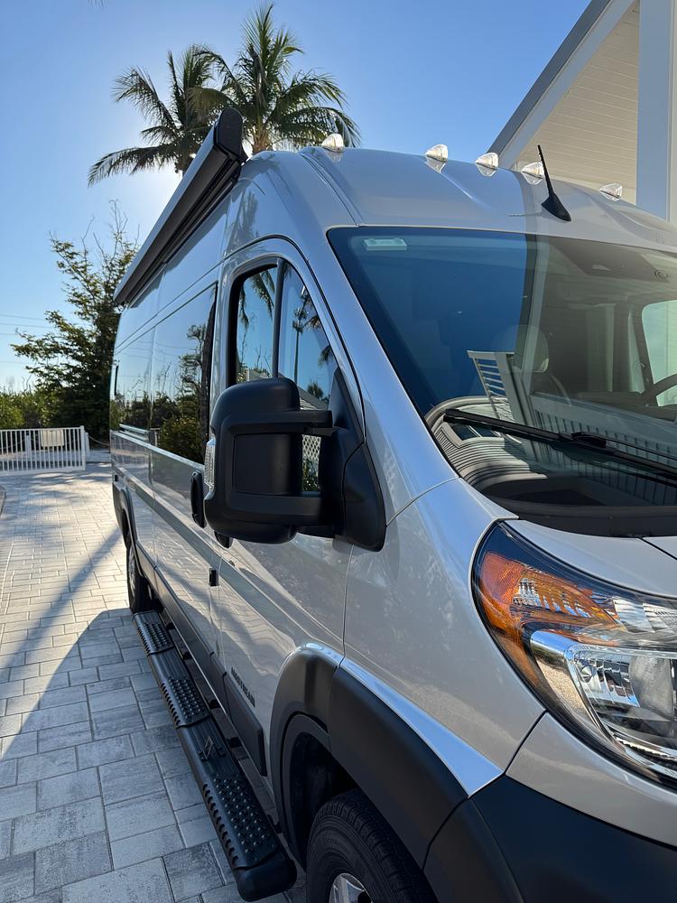 Accessories offered at no cost to successful buyer include additional programmed key fob (for 3 total), Hughes Autoformers 30 Amp Voltage Booster with Surge Protection, RV Guard 30a-110v and 50a-30a plug adapters, Genuine Mopar Carpet Mat Front Bucket Seats w/ Logo, Genuine Mopar Rubber Mat Front Bucket Seats w/ Logo.