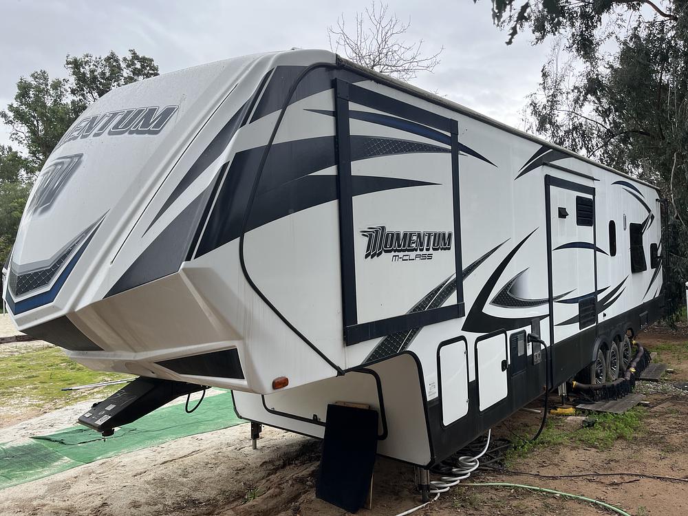 The 2017 Grand Design Momentum M-Class 388M is a luxurious fifth wheel trailer that offers a spacious and comfortable living space for your travels. With only 8000 miles on it, this stunning RV has normal wear and ready for your next adventure. The Grand Design brand is known for its high-quality construction and attention to detail, and the Momentum M-Class is no exception.