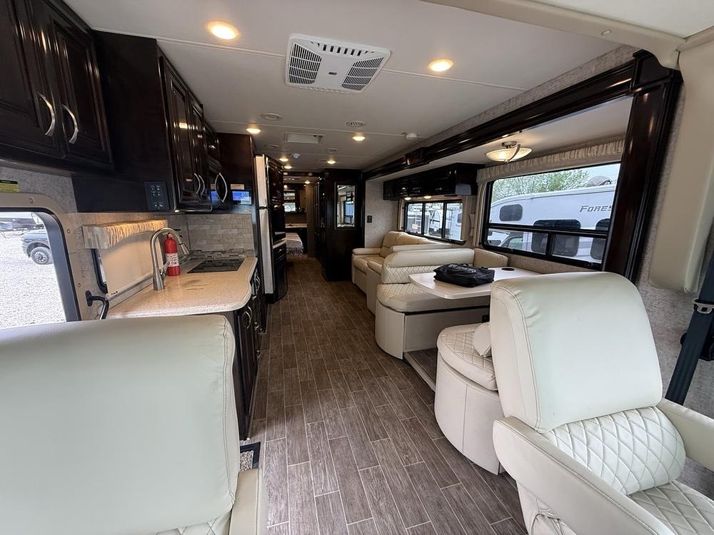 ONLY 4883 MILES!!!! FREE DELIVERY TO ALL 48 STATES!! THIS BEAUTIFUL LIKE NEW 2018 THOR MOTOR COACH MIRAMAR 35.3 IS A CLASS A DRIVABLE RV LOADED WITH LUXURY!! 37 LONG. 2 SLIDES. 2 BATHROOMS, 2 A/C. FRONT LIVING WITH KING MASTER SUITE. DINETTE & SLEEPING SOFAS. POWER OVERHEAD BUNK. BEAUTIFUL BATHROOMS & CLOSET. WASHER/DRYER CLOSET. FRONT LARGE LIVING AREA WITH THEATER SEATING & UPGRADED SLEEPER SOFAS. ELECTRIC FIREPLACE & 3 FLAT SCREEN TVS. BEAUTIFUL KITCHEN with residential refrigerator, STAINLESS STEEL APPLIANCES, and LOTS OF CABINET STORAGE. FULLY ENCLOSED & HEATED UNDERBELLY. 4 SEASONS PACKAGE WITH UPGRADED INSULATION AND DUAL-PANE WINDOWS. DESIGNED FOR YEAR-ROUND COMFORT IN HOT OR COLD CLIMATES. 2 COLD A/C UNITS. 50AMP POWER. AUTO-LEVELING SYSTEM. HUGE BASEMENT STORAGE. POWER STEP ENTRY. DUAL AWNINGS WITH LED LIGHTS. LUXURY FEEL THROUGHOUT!!, OUR PRICE: $79,995. WE HAVE MULTIPLE HIGH-END FIFTH WHEELS TO CHOOSE FROM!!We are located in KENNEDALE, TX. We show RVs 7 DAYS A WEEK BY APPOINTMENT. Call BRET 8178050067 or AMY 8176584633. FREE DELIVERY TO ALL 48 STATES.WE INSPECT & GO THROUGH ALL TRAILERS TO ENSURE OUR CUSTOMERS ARE 100% SATISFIED.¡SE HABLA ESPAÑOL!