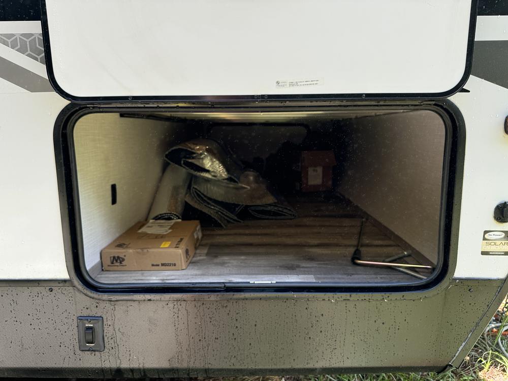 2022 barely used bumper pull camper. In great condition, only used for a few months and kept clean and with AC running. One slide in living area. Queen bed, but with pull out couch and convertible table, can comfortably sleep 4. Comes with 2 propane tanks.