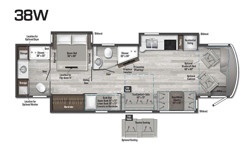 The Winnebago Forza is known for its superior craftsmanship and attention to detail, making it a top choice for discerning travelers. The 38W trim level offers a spacious interior layout with all the amenities you need for a comfortable journey. From the well-appointed kitchen to the cozy sleeping quarters, this motorhome has everything you need for short trips or extended stays.