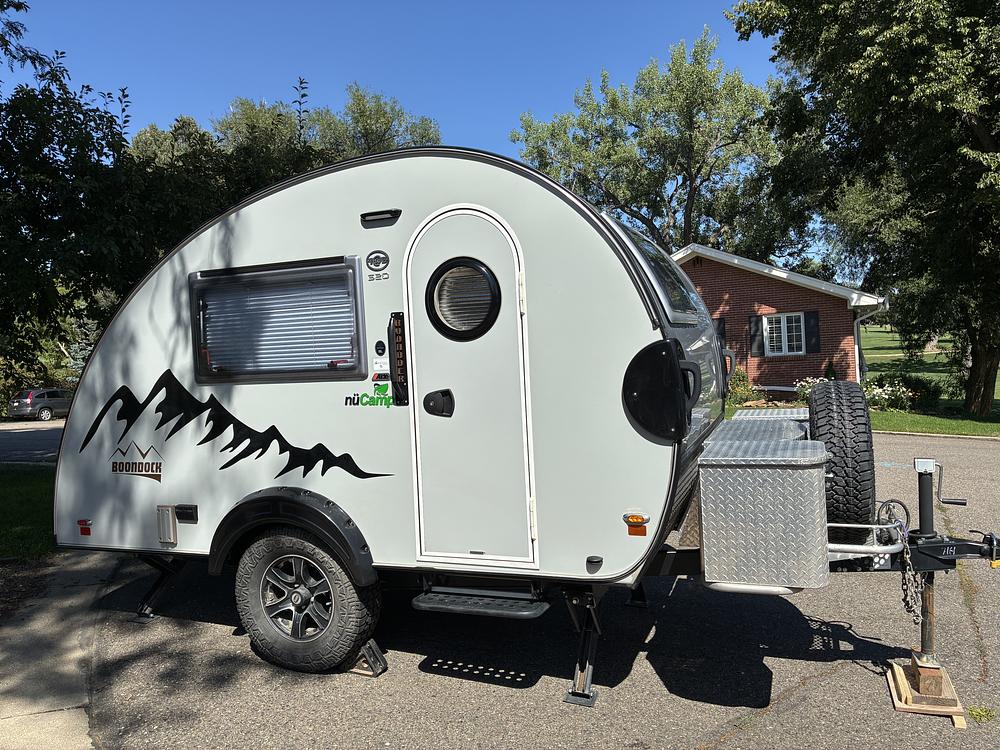 This NuCamp has the kitchen in the back clam shell style which NuCamp no longer offers anymore. We have taken this camper off grid for a week at a time. It has the heavy duty larger tires for that.