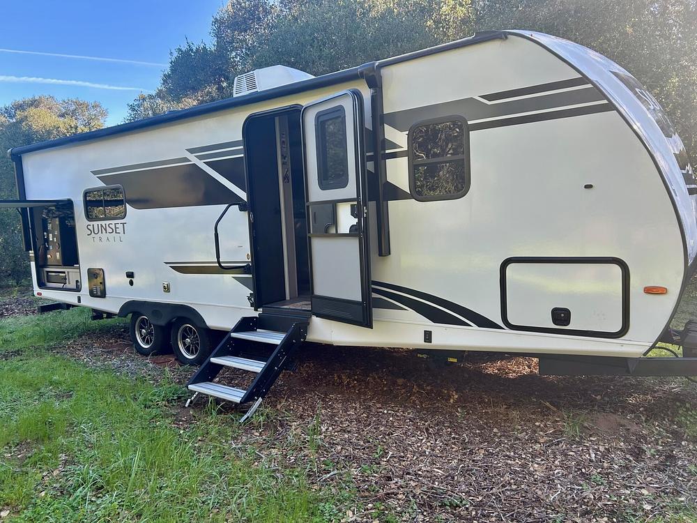 27 foot travel trailer with outdoor kitchen.