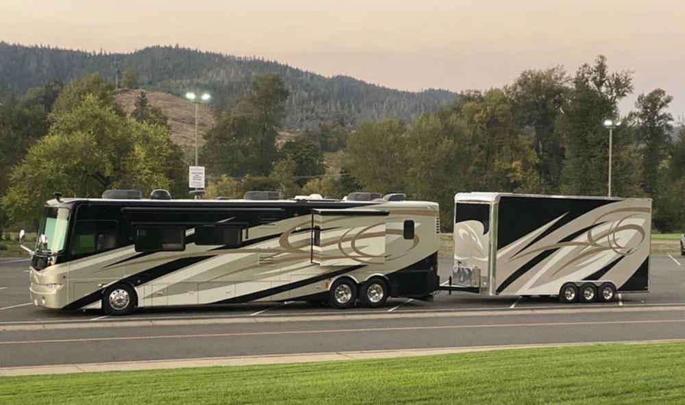 This is an exceptional luxury coach and racing trailer package, ready for the road, the racetrack, or full-time adventure.