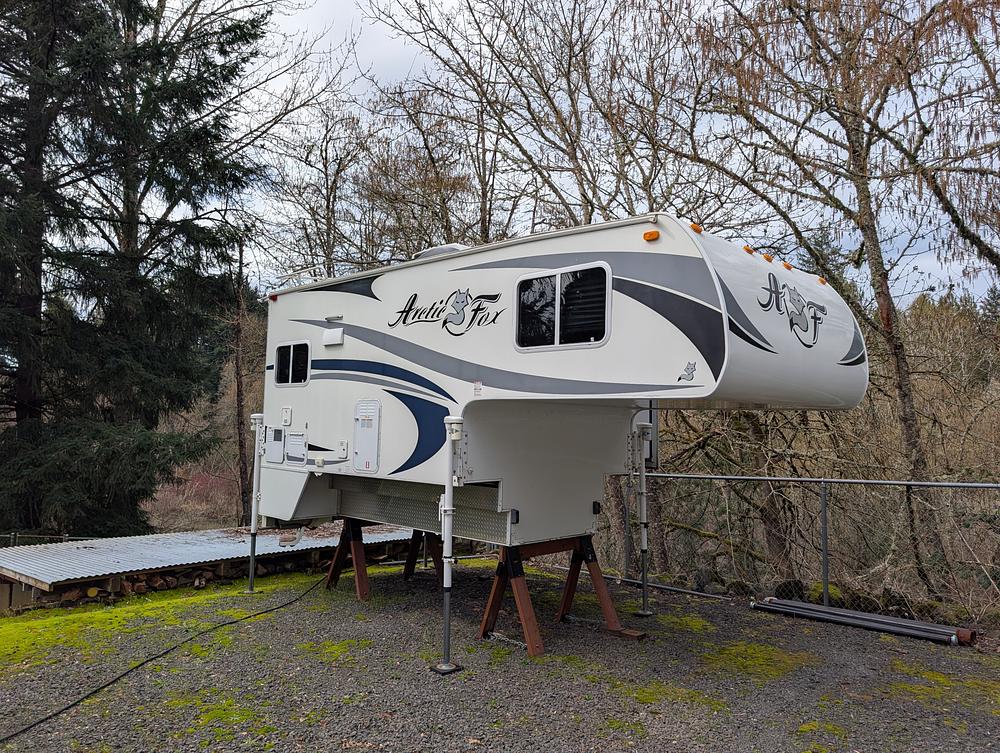2017 Arctic Fox truck camper. One owner. Excellent condition, loaded, rarely used and everything works. Perfect for off-grid camping. Covered annually from October to April . 2500 watt latest model (the quiet one, removed the original model) Cummins LP Generator with only 13 hours on it. Dual 30LB LP tanks(full), electric jacks, large 120VAC/LP refrigerator/freezer, microwave, 19" 12V LED TV, AM/FM/CD/DVD player with external speakers, dry bath with shower, 100 watt solar panel, 11,000 BTU air conditioner, heated holding tanks, Torklift stainless "Fast Gun" tie downs and much more. See Bill of materials in pictures.