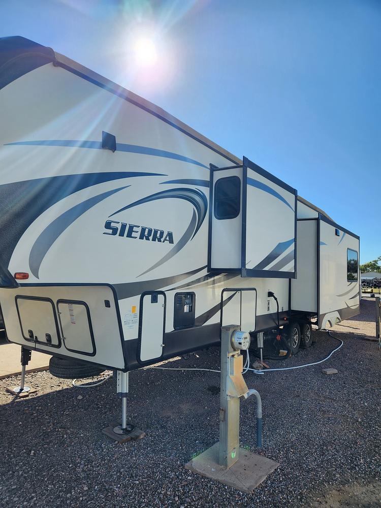 The 2017 Forest River Sierra is a luxurious Fifth Wheel trailer that offers the ultimate in comfort and style for your camping or RVing adventures. This is the 378FB floor plan.