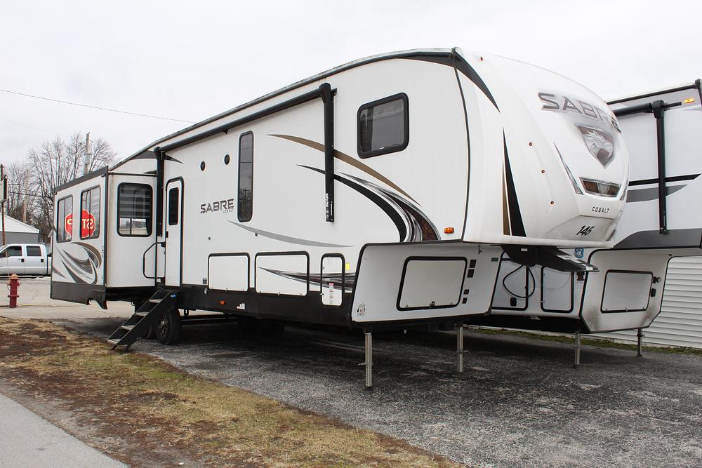 Front bedroom with king bed and slide out, front wardrobe closet with washer/dryer prep, rear living with opposing slides, theater seating and kitchen table/4 chairs in living slide out, sofa across rear of camper, kitchen and entertainment center in opposing slide out, residential fridge with bottom freezer, 3 burner stove/oven, microwave, single basin kitchen sink in island, electric fireplace, room off of kitchen with sofa could be extra bedroom or office, loft above extra bedroom, bathroom has rectangle shower with seat and sliding glass doors, skylight above shower, 2 - A/C's, ducted furnace, 50amp hookup, outside kitchen, 16' power awning, all in one docking station on drivers side, 3 slide outs, sleeps 8