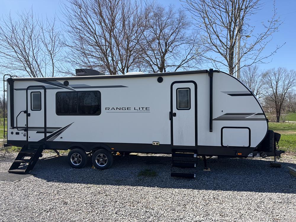 The Range Lite 232MD is perfect for families or couples looking to explore the great outdoors without sacrificing the comforts of home. Plenty of room for relaxation and entertaining, with a well-appointed rear kitchen, cozy sleeping areas, Master Bed replaced and has an almost new, regular length Queen mattress. There is also Haloview rear and side cameras for a safer driving.