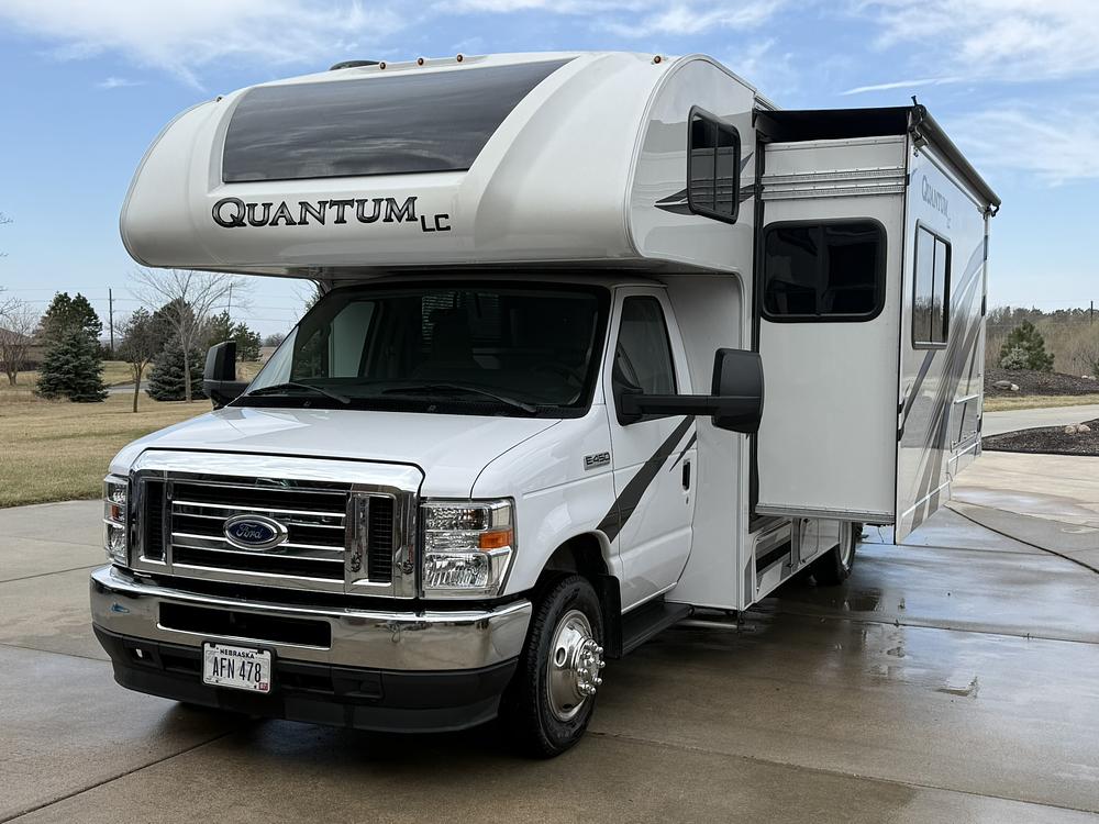 Excellent condition 2023 Thor Quantum LC25 Class C motorhome on the Ford E450 chassis with only 8,304 miles. This is a very clean, well-maintained unit with a great floorplan and numerous upgrades including solar, auto generator start, exterior TV, and extended warranty.