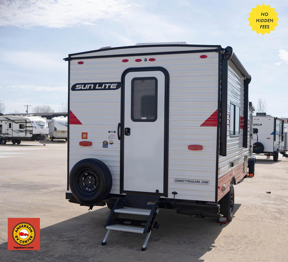 Wonderful, unique rear door floorplan! Very efficient camper, equipped with a power front jack, power awning, and an upgrade package that includes an oven. Visit us at Anderson RV Center, 5050 SW Topeka Blvd. Tue-Fri 9-5:30, Sat 9-1. Sunday and Monday by appointment.