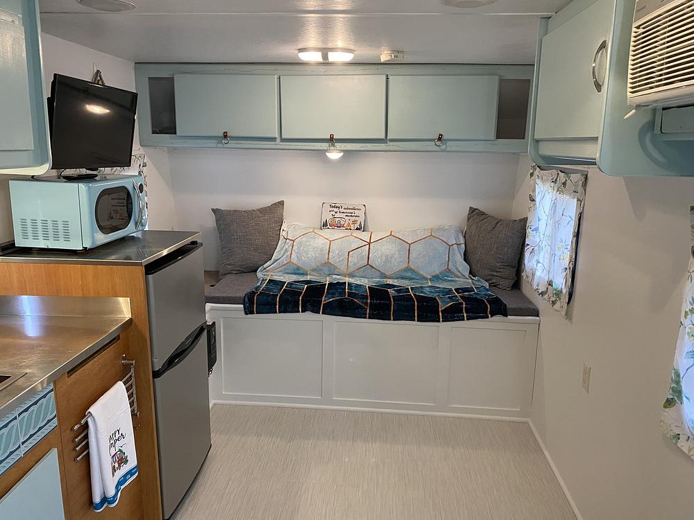 Ready for off grid, full-time living! Completely renovated. Upgraded to lithium with 2 batteries and room to add more. 800 watts of solar on the roof, 4 tilt-able panels. 3 newer double pane insulated windows. Double layer insulation underneath. 37 gallon fresh water tank. Newer electric adjustable temp water heater, newer water pump. Custom 3 in mattress. 2 door fridg/freezer, stainless steel countertop, deep bar sink, new stove top. Smart tv. Keypad entry. Newer low mileage tires, includes 1spare, propane tank. Custom welded shelf on hitch. Includes all towing items. Clean, fresh paint, so many options with open floor plan, crazy amount of storage, so many upgrades you will have to see it to believe it! I lived in this full time for 3 1/2 yrs and loved it!