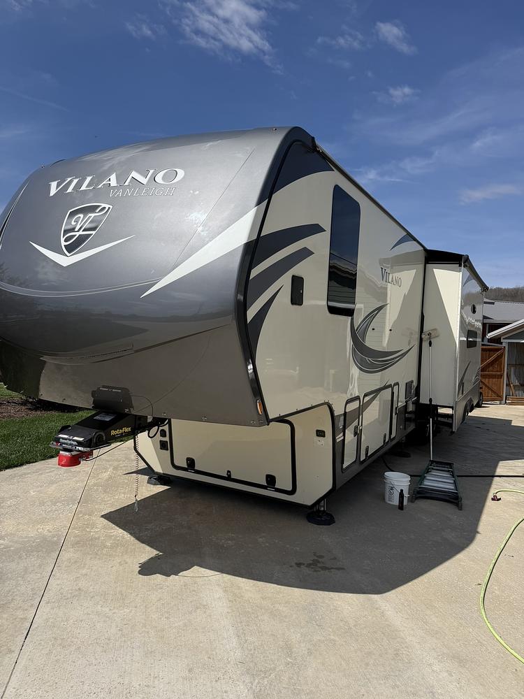 Beautiful luxury fifth wheel. Everything works like new , recently detailed and waxed. Newer AWG batteries, new loveseat, sofa dinette set, new kitchen faucet, fireplace , king size bed, large shower with sliding glass doors . Is best pull on road with sumo springs added. This is a great rv ready to go anywhere. Always pulled in and stored undercover.