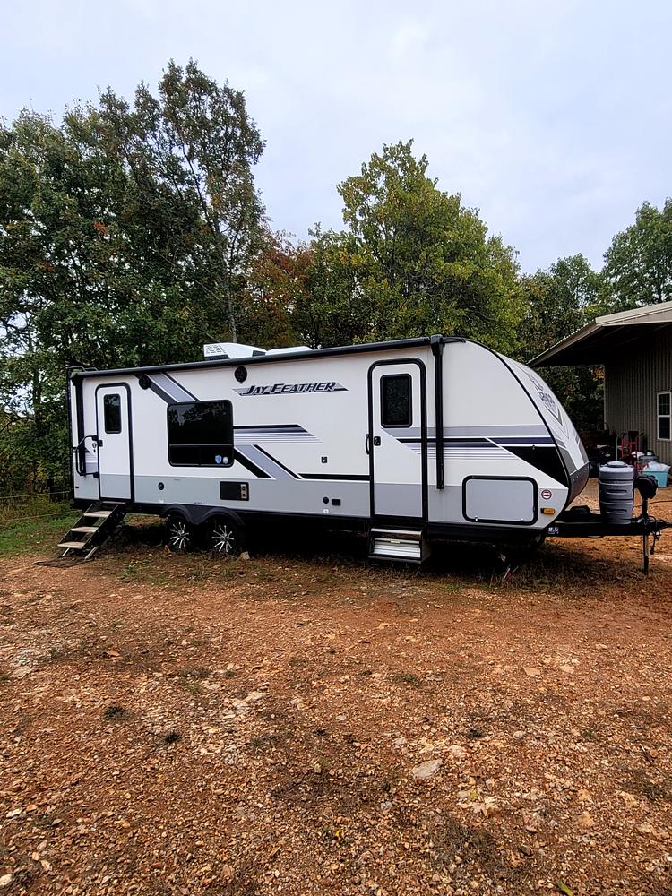 2024 Bought brand new. 29- foot model has approximately 125 miles total. Very good condition. One black tank, 2 grey tanks (shower, sink/kitchen sink). Queen size bed. Nice size kitchen. Bump out has the 2 recliners that face the TV. Additional storage under the bed, a large storage area in the front of the RV and a smaller storage area on the right side. Have all necessary hoses to hook this RV up immediately for your convenience including water filter. Resides at Eureka Springs.