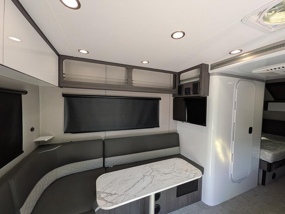 BEAUTIFUL PREMIUM CLEAN & STATE of the ART travel trailer! UNIQUE floor plan with LOTS of usable living space and storage-no slideout needed. LOTS of NATURAL LIGHT! Designed for either ON GRID or OFF GRID. WELL THOUGHT OUT design! Large sized automated canopy- without any poles to avoid. Dinette area has a comfortable L shaped couch- perfect for dining, games, and an extra-long additional sleep area. LARGE windows provide A LOT of natural light. OUTDOOR Kitchen with both a cast iron griddle and an electric portable cooler. Spacious wet/dry shower/toilet combo. Two comfortable twin beds with a beautiful overhead window for star gazing and a fabulous breeze. LOTS of useful storage including exterior storage compartments pantry/linen closet and overhead spaces for clothing as well as any other necessities. Choose between a unique and subdued blue lighting option as well as the traditional white lighting. Kitchen has all the essentials and more. Large refrigerator- opens from either side. Plentiful storage above the sink/stove as well as a vast storage area under the sink--perfect for a hamper AND a full-size garbage can. Even has a large pantry/linen closet. Ample storage above the dinette. Dual axle. Off road tires.
