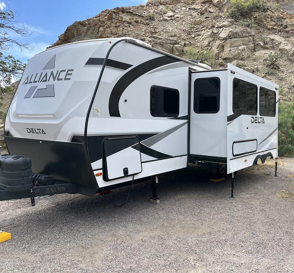 This 2024 Alliance RV Delta 281BH is a luxurious travel trailer designed for comfort. Used only 6 times, this like-new model is in pristine condition. The Alliance RV brand is known for its high-quality craftsmanship and attention to detail, and the Delta is no exception. Has been stored under cover and awning in locked space since purchased.