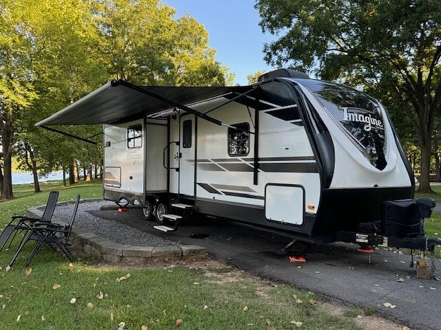 The 2019 Grand Design Imagine 2670MK is a top-of-the-line travel trailer that offers luxury and comfort for all your adventures. The Imagine series from Grand Design is known for its high-quality construction and attention to detail. This trailer is in great condition with all appliances working as they should, two slide outs, a center kitchen island and a telescoping TV that retracts to provide more than ample counter space. An extra bonus is the electric fireplace that is not only attractive, but is also a heater in cold weather saving on propane. This trailer is especially cool in hot summers with two air conditioners. One ducted throughout and one additional one in the bedroom.