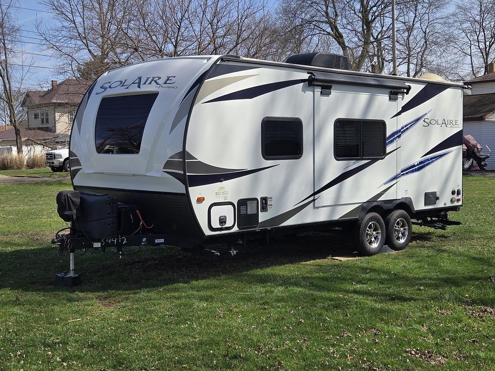 Slide-outs: 1 (Dinette or Sofa, per floorplan). Many extras including new Carlisle tires, slide topper, 2000 watt inverter, 230ah lithium battery w/ bluetooth, auto transfer switch, sewer and fresh water hoses, wheel chocks, tire pressure monitors, etc. Great camper always covered when home and washed and waxed every trip. All works as should, and ready to go. Cover goes too.