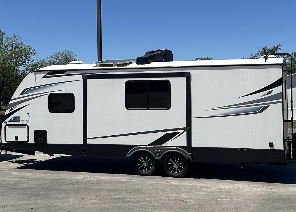 Outside, the Passport Grand Touring features a durable and aerodynamic design that is perfect for towing. The sleek exterior is accented by stylish graphics and LED lighting, while the power awning provides shade and protection from the elements. The large pass-through storage compartment offers plenty of space for all of your camping gear, bikes, and outdoor equipment.
