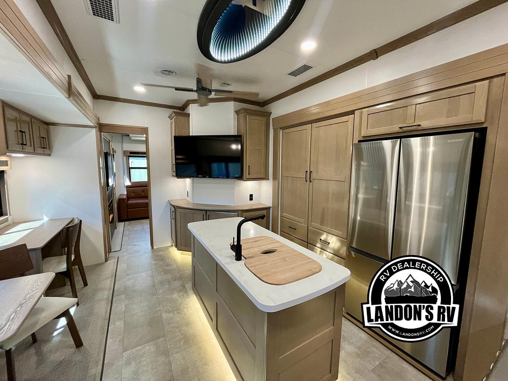 This floor plan kicks um....butt. 3 zones of living with a very unique rear living room. In the main area you have your large kitchen, dining and a good sized desk. In the rear living area you have a very comfy and cozy living space with its own half bathroom. If you like your guests and you want them to stay there is a drop down queen bed. Yes it comes down from the ceiling!! Up front you will find a spacious bedroom with plenty of space to walk around the bed and make it. On top of that it is a Riverstone and a Legacy to boot. It has all the goodies. Some of those are listed below but call for more info.