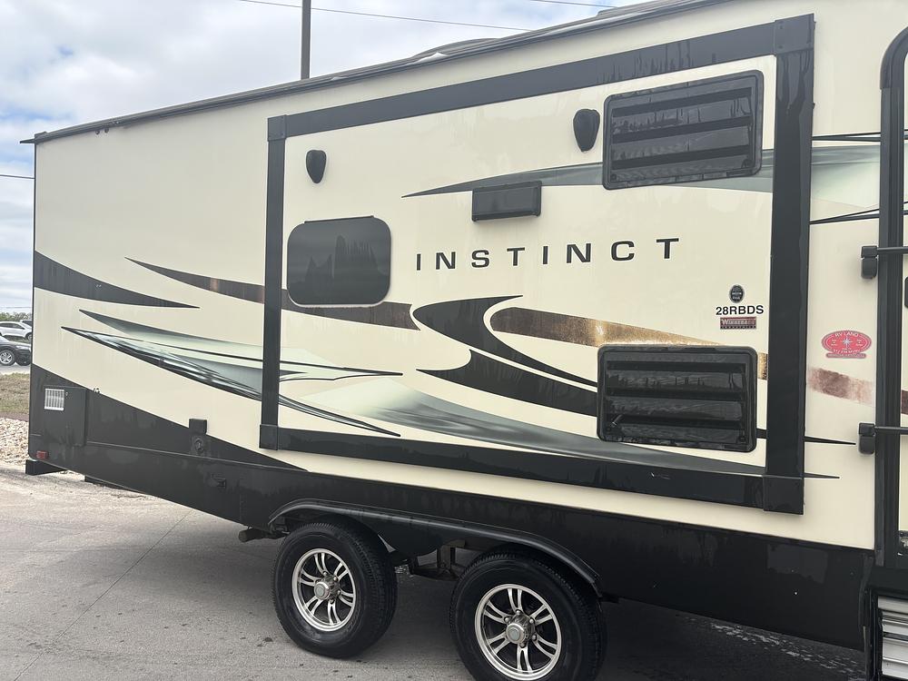 Outside, the Instinct is equipped with all the amenities you need to enjoy the great outdoors. The Awning was destroyed in an unexpected wind storm and was removed professionally. The wiring is still intact and tucked neatly inside the body for easy installation of a replacement. It has a large double sided garage for storage with the doors arches that are normally found on fifth wheels and higher class RVsjust slam them about and they stay that wayno cheap spinning latches.
