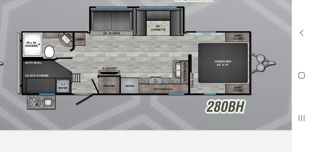 This model boasts a spacious interior layout, perfect for accommodating large groups or families. The 280BH floorplan includes a master bedroom, bunk beds for the kids, a fully equipped kitchen, dinette area, and a cozy living space. With modern amenities such as a flat-screen TV, stereo system, air conditioning (13,500 BTU), and heating (25,000 BTU), you'll feel right at home no matter where your adventures take you.