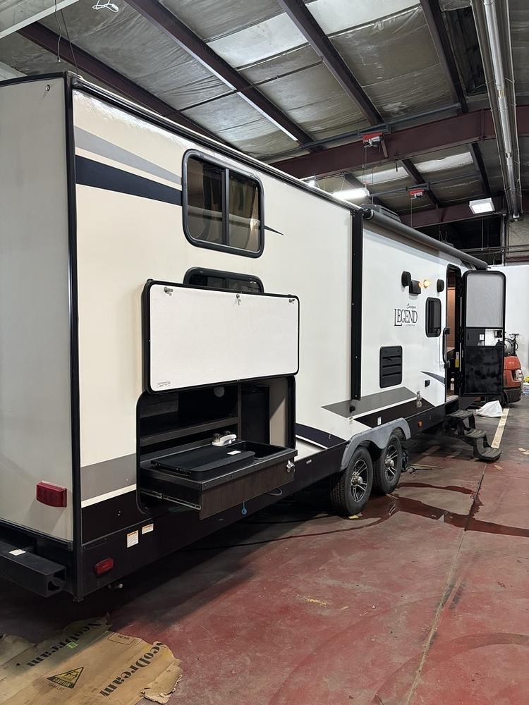 Very nice 2020 Surveyor 295QBLE with 1 slide and rear quad bunks. This unit has everything you need for your next adventure including power tounge jack, power awning, gas/electric refrigerator, air conditioning, furnace, U shaped dinette that folds into a bed, outside kitchen and so much more