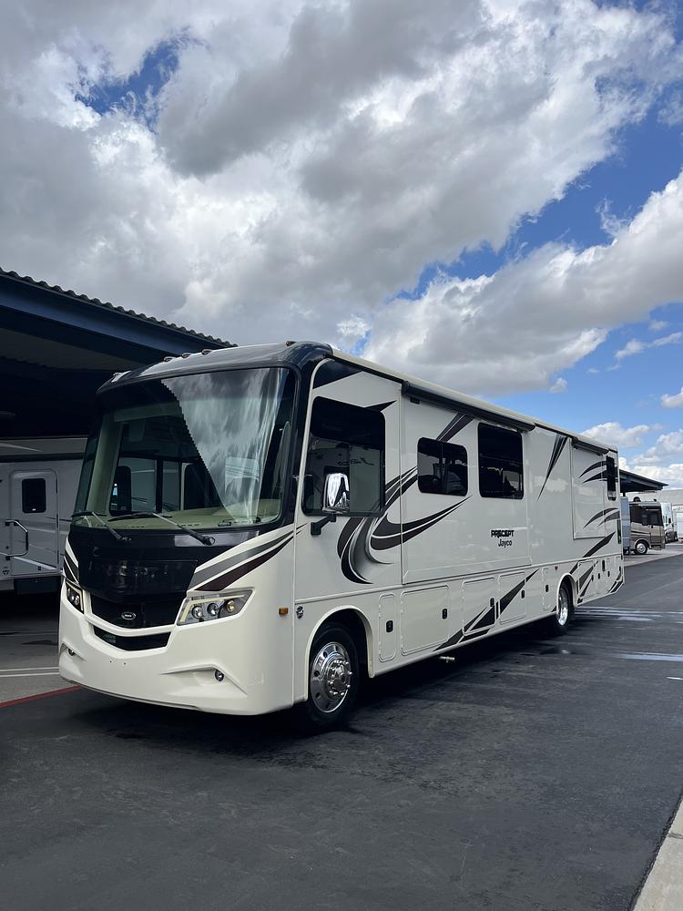 Every year it has been fully serviced, engine, suspension lubed, and generator service done at RV Specialist in Upland. Last year we installed a brand new 15,000 BTU heat pump in the front and replaced all the batteries. About 2 years ago we replaced the slide-out awnings and did a full service on all appliances along with resealing the RV.