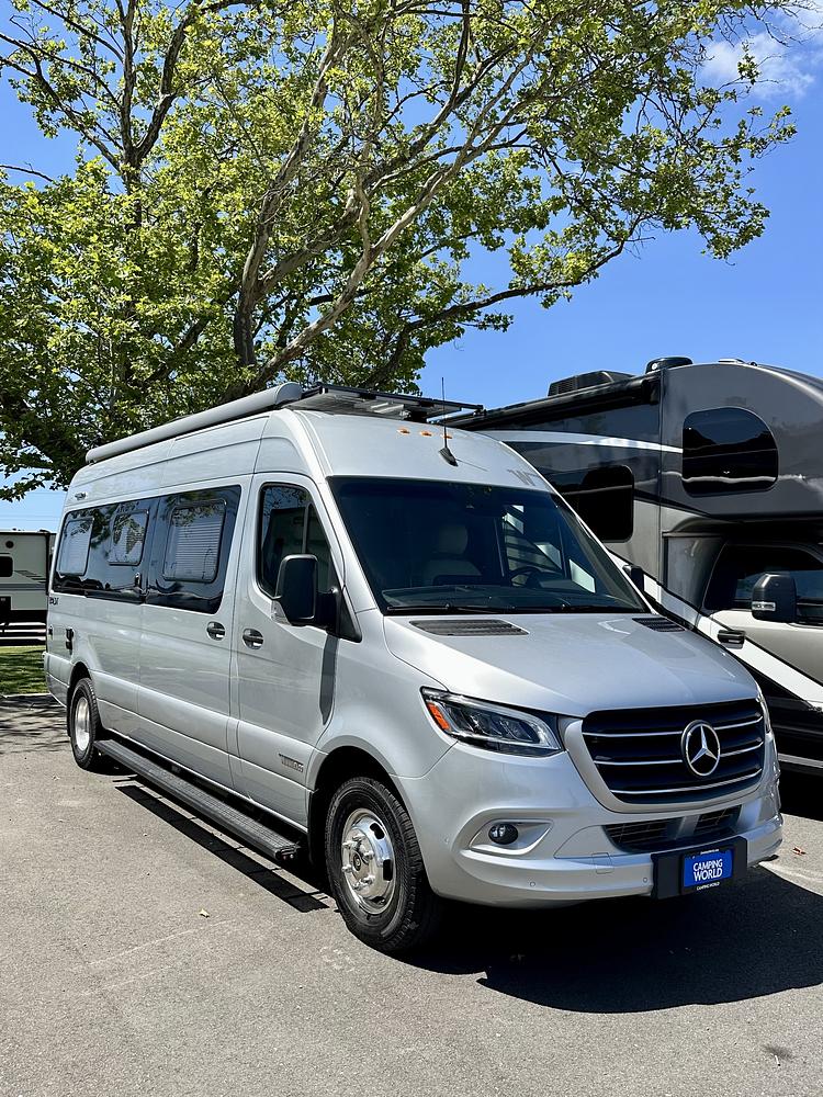 QUEEN BED in a Class B Camper Van! Powered by the unparalleled Pure³ lithium ion battery energy system with 11,600 watt hours of power and a 3,600W pure sine inverter enables you to silently boondock in the great outdoors. Rest assured you'll never be THAT person with the loud generator in the campground. The 70BL floorplan features an independent lounge with kitchenette, wet bath, ergonomic dinette seating, smart storage solutions, and queen bed sleeping in the rear of the van. Convenient amenities include: HUGE Carefree awning with auto-retract for safety, wet bath, room in rear for residential queen bed (bring your own for comforts of home!), Apple CarPlay/Android Auto, refigerator, microwave, electric induction range, dining table, brand new faucet. Riding on the luxurious Mercedes Benz Sprinter 3500XD dually chassis, you'll be the ruler of the road in this highway cruiser! Very easy to drive with a full suite of Mercedes modern driver assist features including backup camera, 360 proximity sensors, blind spot monitor, active cruise control, cross wind assist, and collision brake assist.Simplify your vacation by securing the rental car AND the luxury hotel room all in one!