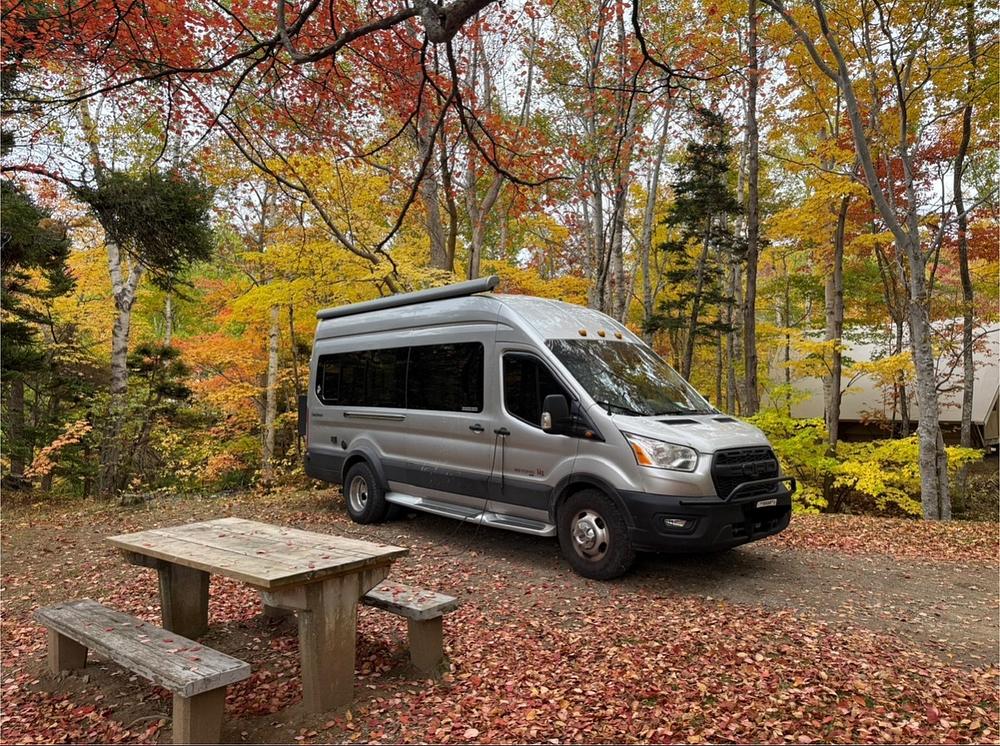 The Lithionics 600Ah lithium battery + 200W solar power systems eliminate the need for a generator, allowing for quiet, extended off-grid camping. Combined w/ the Truma Combi heating system & upgraded Truma Aventa air conditioner, this van is well-suited for a wide range of climates.