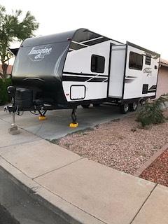 The GRAND DESIGN IMAGINE XLS 22MLE is a top of the line travel trailer designed for those seeking adventure and comfort on the road. This model boasts a sleek and modern exterior with all the amenities you could ask for in a home away from home. With a 2021 model year, you can expect the latest in RV technology and design features.