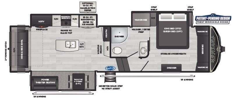 The exterior of the Keystone Montana High Country is just as impressive as the interior, with sleek lines and modern design elements. The fifth wheel construction provides a stable and secure towing experience, so you can drive with confidence no matter where your travels take you. With 2022 as the model year, this RV is equipped with the latest technology and safety features to ensure a smooth and worry-free trip.