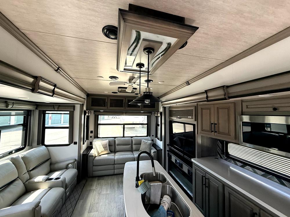 The 2022 Keystone Montana 3231CK is a luxurious Fifth Wheel trailer designed for those who appreciate the finer things in life. With only 1500 miles on the odometer, this brand-new model is ready to hit the road and provide its owners with an unforgettable travel experience. The Keystone Montana is known for its exceptional build quality, innovative design features, and spacious interiors. The 3231CK floorplan offers a perfect balance of living space and functionality, with a large living area, fully equipped kitchen, comfortable bedroom, and luxurious bathroom. This model is well-appointed with high-end amenities such as stainless steel appliances, solid surface countertops, elegant cabinetry, and deluxe furnishings. The exterior of the Keystone Montana is equally impressive, featuring a sleek and aerodynamic design, high-quality construction materials, and ample storage space for all your gear. Whether you're planning a weekend getaway or a long-term adventure, the Keystone Montana 3231CK is the perfect choice for discerning travelers who demand the best. With its top-of-the-line features, unmatched comfort, and superior performance, this Fifth Wheel trailer is sure to exceed your expectations and provide you with years of enjoyment on the open road. Experience the luxury and convenience of the Keystone Montana 3231CK and make every journey a memorable one.
