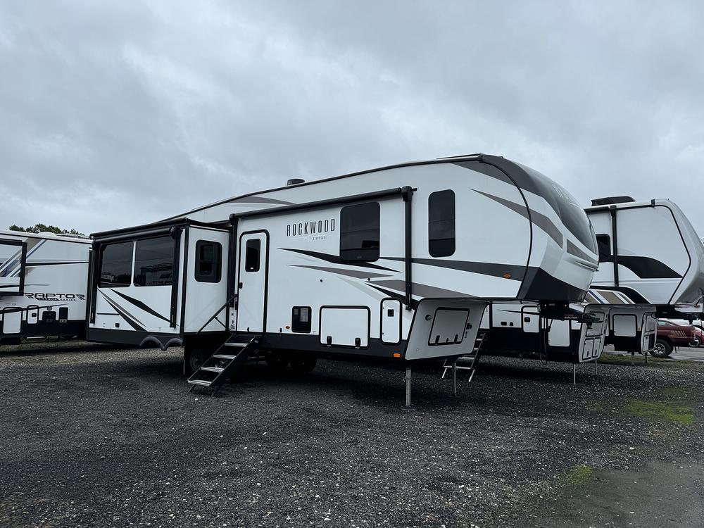 The exterior of the Rockwood Signature features a sleek and modern design, with premium finishes and attention to detail. The large slide-outs create an open and inviting living space, while the durable construction ensures that this fifth wheel will last for years to come.