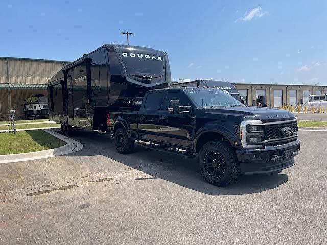 Midnight Edition of Cougar 29RLS. The interior is same floor plan except has booth seats at dining table. There is a pull thru drawer in the underneath storage area. Trailer has been winterized and wheel bearings packed. It has instant hot water and 75 gal water tank. There are 2 20 gallon propane tanks. Trailer will come with 50 amp cord plus extension to reach 50. Sewer hose and water hoses included. There is a blackstone grill that will go with trailer. Trailer has been ceramic coated. I will include the swivel wheel trailer to haul generator and bikes. All cooking pans- silverware-dishes- coffee maker will go with trailer. Trailer has a queen bed in master and sofa makes into a bed. There is plenty of storage under the bed and in cabinets. There is a pantry and hook ups for a washer and dryer. Trailler has been kept in storage and used only 5 times in 2 years.