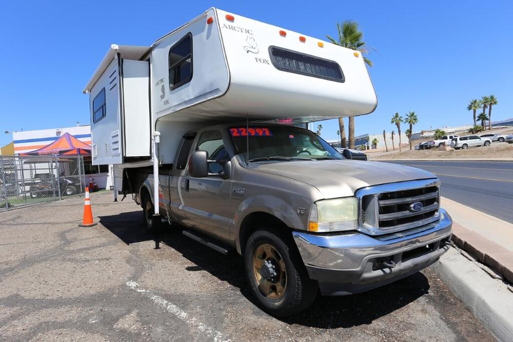 2003 Ford F250 4wd, V10 pickup equipped with 2001 Arctic Fox 990 Truck camper.