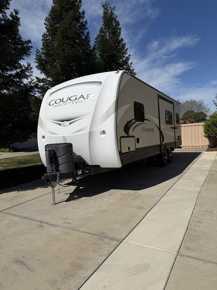 Super clean Cougar that's ready for the summer. This model has the big king-sized bed and the perfect floorplan that works for couples, families, and groups. It has all of the amenities you'd expect in a mid-sized trailer. With a 2-way fridge, this model is great for camping both on and off the grid. It has two solar panels installed and a rubber roof.
