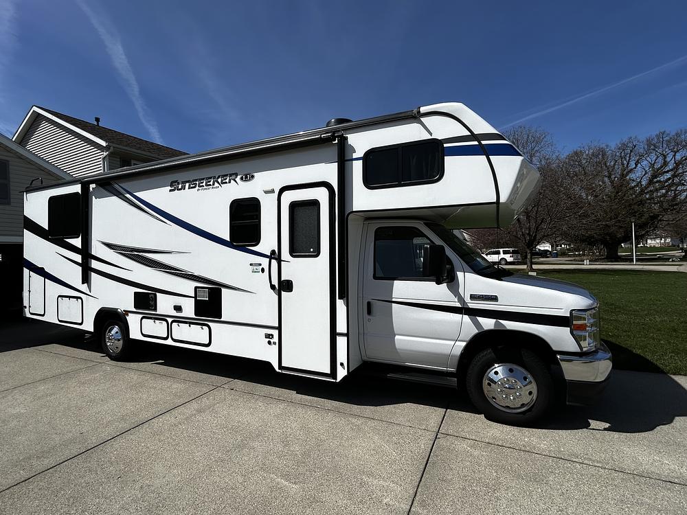 2021 FOREST RIVER Sunseeker Class C Motorhome with the very popular 2850 LE floor plan. 14,690 miles. Excellent condition, ready to travel immedediately. No repairs or updates needed. Heated storage every winter. Large slideout for extra living space with additional sleeping for family or guest. Equipped with the 7.3L V8 Giodzilla Engine ; 430 horse power priortizing durable towing power. Highlights ; 15' 6" power awning; backup camera with mirror monitor; Cummins ONAN QG 400 Generator; Winegard Air 360 OMNI Directional TV/AM/FM Atenna; Connex TV/Stereo system; Artic Package; Pull out food pantry; Softclose Drawers; Safe for valuables; Plenty of storage inside and out. Non-smokers and no pets.