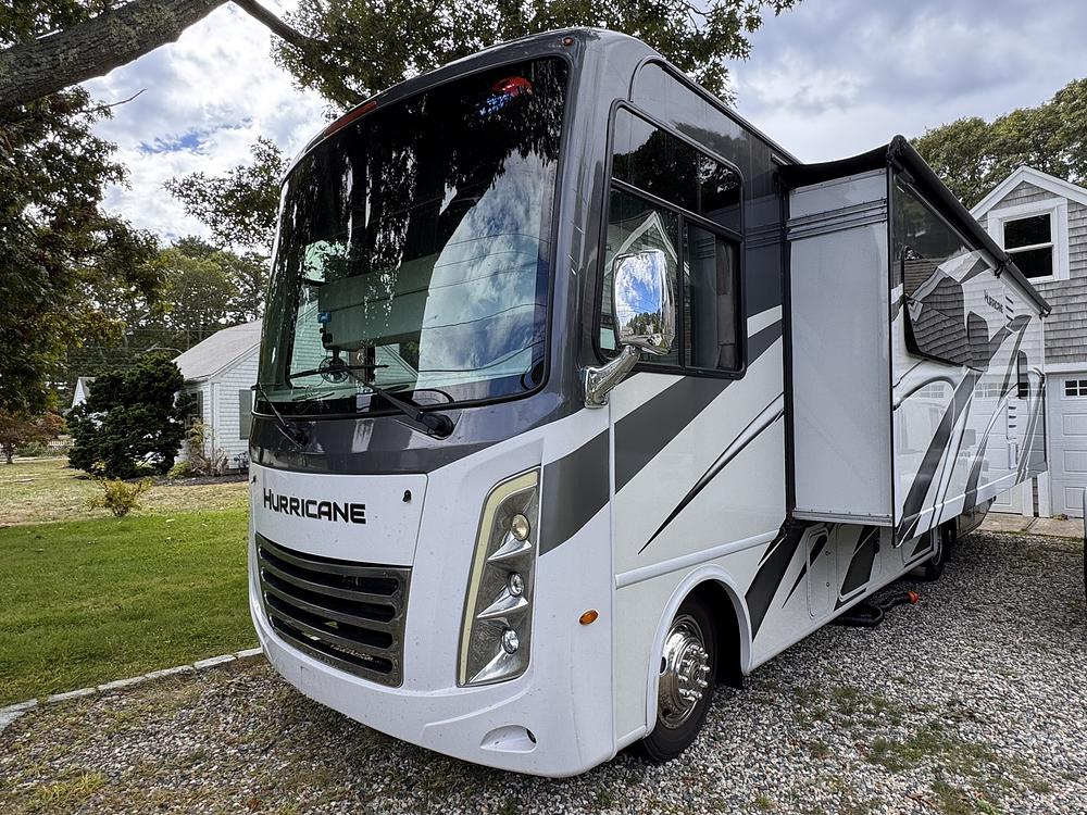 The Thor Hurricane 29M is perfect for a solo traveler or a couple with occasional guests. Thanks to Ford’s “Godzilla” engine, it’s easy to drive, park, and tow your dinghy vehicle from the 8000lb hitch. Clean! No smoking or pets.