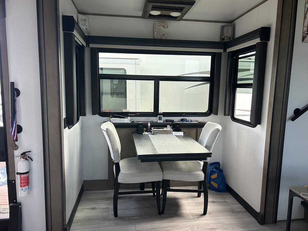The 2024 Keystone Montana 3901RK is a 42 1/2 foot fifth wheel with many amenities for comfortable destination camping or exploring the country. The interior has 1 1/2 bathrooms, king size bed, large living room and dining area for 4. The rear kitchen has a residential refrigerator, three burner gas stove with large oven, microwave oven and double sink. There are 2 air conditioners for ample cooling and a propane furnace, electric fireplace and heat pump for cold weather camping. Theres lots of interior storage/ cupboards and the exterior has 3 huge storage spaces including a pullout tray under the kitchen area thats great for heavier items such as electric bikes, corn hole boards , etc. The electrical package includes a solar panel and a 3000 watt inverter for boondocking and it lowers your electrical costs for seasonal parks. This camper has been very well maintained and is in like new condition. We have used it for 3 winter seasons in Florida and were only selling because we bought a home.