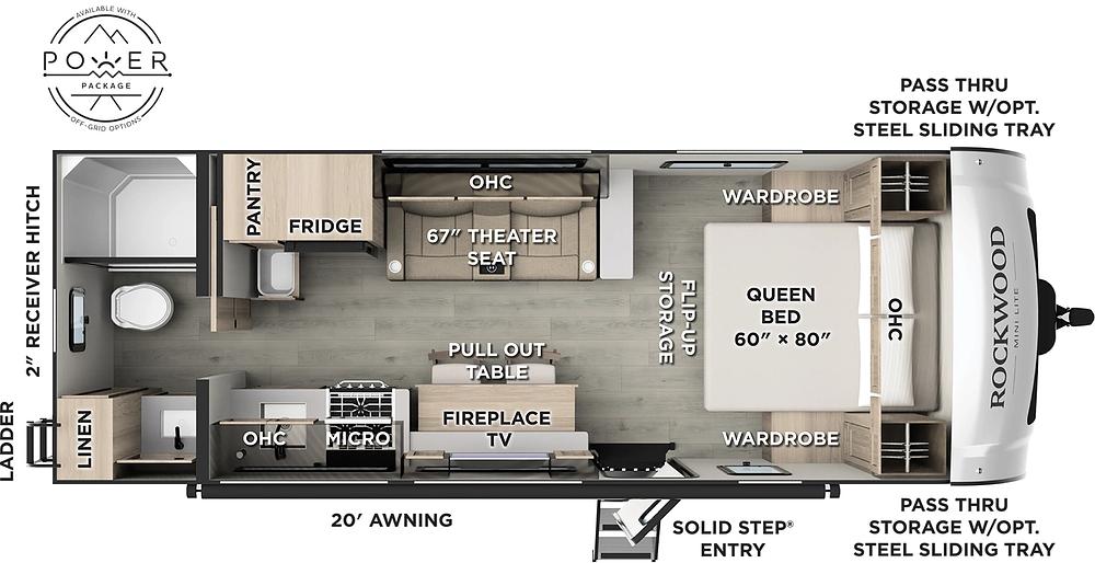 The Rockwood Mini Lite 2524FBT is another addition to our traveler series with no slide-outs! This floorplan offers comfort and versatility in a lightweight design, making setup quick & simple while reducing weight & maintenance. Its spacious front bathroom & walk-around bed creates a relaxing retreat, while the open living area still provides plenty of room to relax. Built with the quality and smart storage Rockwood is known for, the 2524FBT is perfect for easy towing & hassle-free camping.