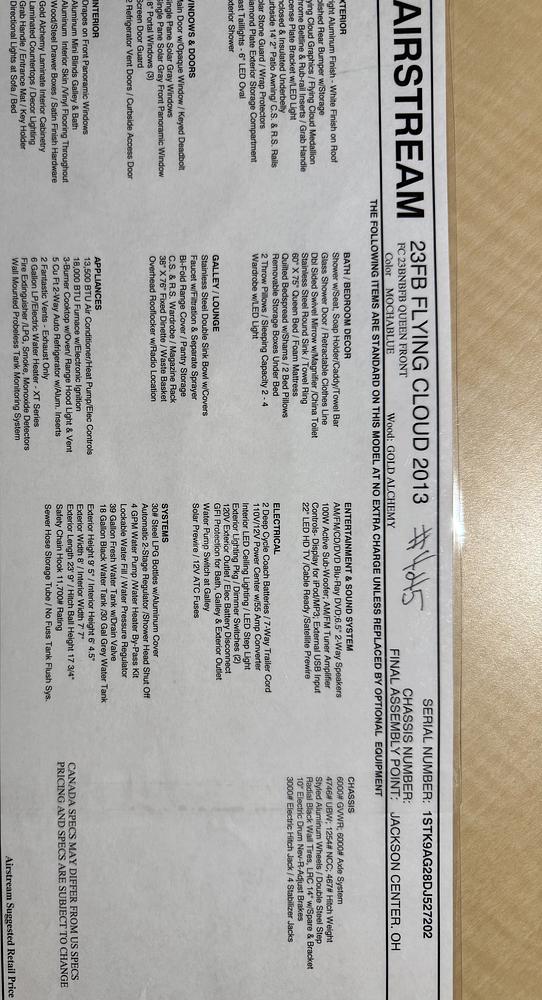 Included with the sale are all owners manuals, maintenance records, trailer hitch and sway bars, and receipts for repairs and upgrades, giving buyers confidence in the condition and care of the trailer.