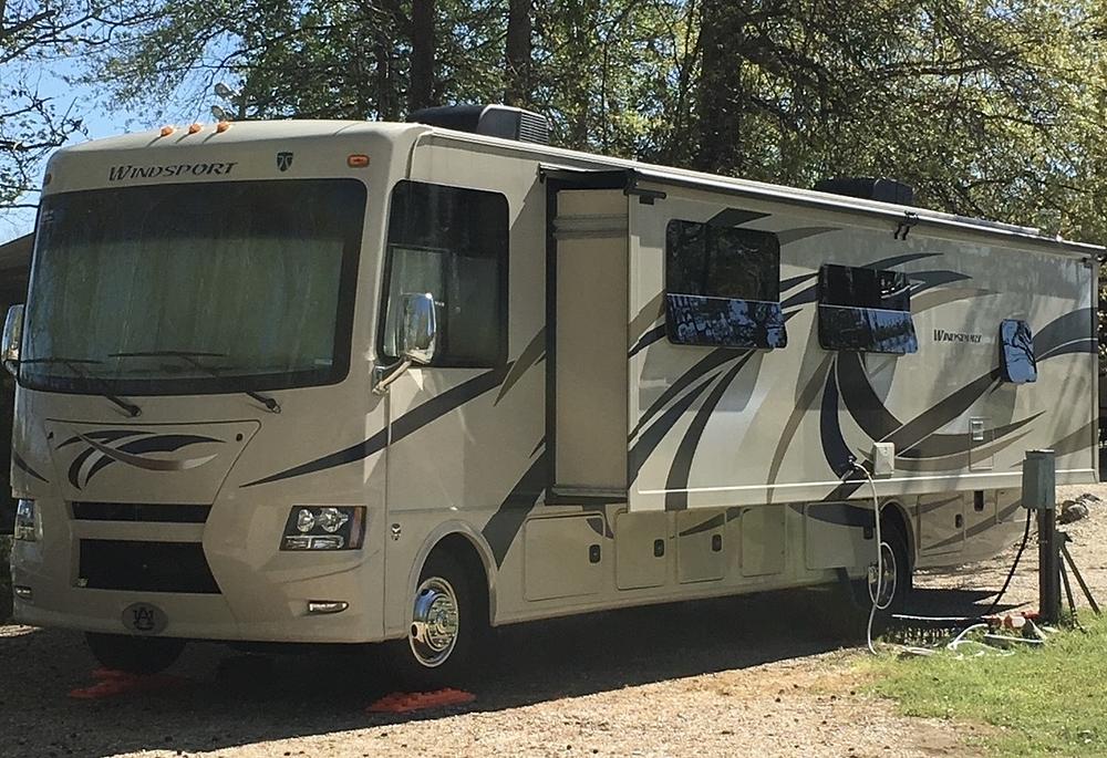 Original owner. Great condition. All 6 tires are date coded 2621. (Firestone 14 ply commercial). Never been driven in salt or snow. Onan 5500 onboard generator with new Onan carb. New Shade Pro window covers. Updated vinyl flooring, new kitchen and bath tile backsplash. All the vinyl seats and cushions professionally upholstered in durable marine grade vinyl. 3 TVs (2 new smart TVs inside). 2 ACs 27000 BTU work great. Electric and gas water heater. Outdoor kitchen with countertop and sink with propane connector for gas grill. Washer and dryer hookup prep package.