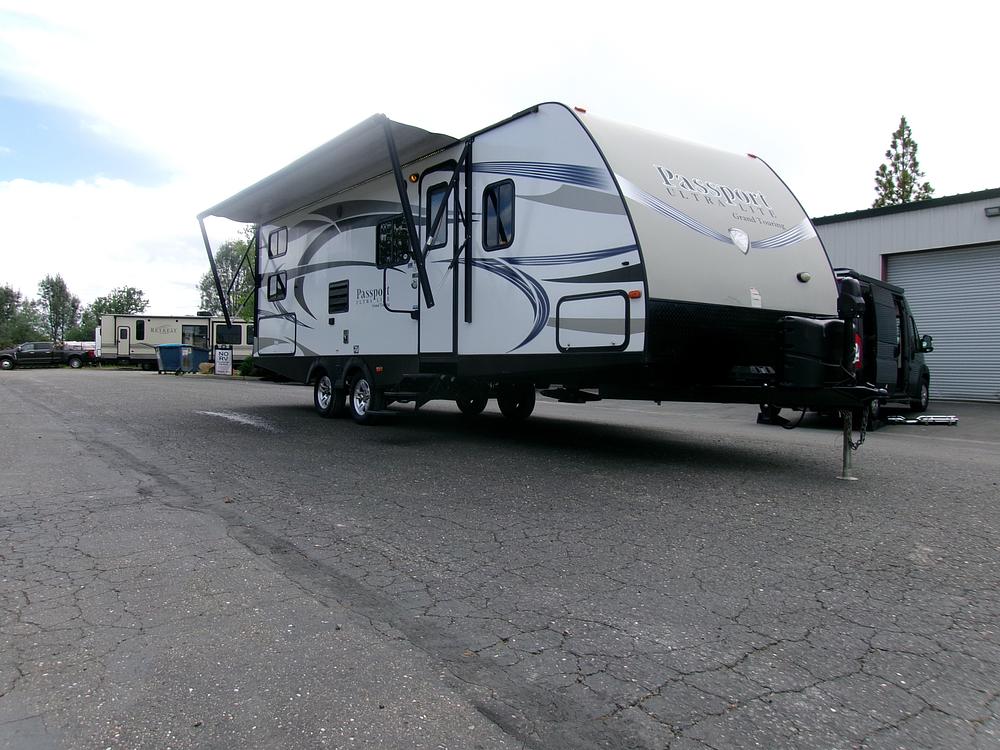 THIS 2016 KEYSTONE PASSPORT GRAND TOURING 2670 BUNK HOUSE TRAVEL TRAILER WITH A SLIDE IS IN GOOD CONDITION!! THE GRAND TOURING EDITION IS EQUIPPED WITH THE LARGE DINNING BOOTH, LOVESEAT SOFA BED, QUEEN BED INFRONT, FULL SIZE BUNKS IN THE REAR, SLEEPS 10, 2 TV'S, OUTDOOR SHOWER, ELECTRIC AWNING, OUTDOOR KITCHEN, OUTDOOR SPEAKERS, AND MUCH MORE!!