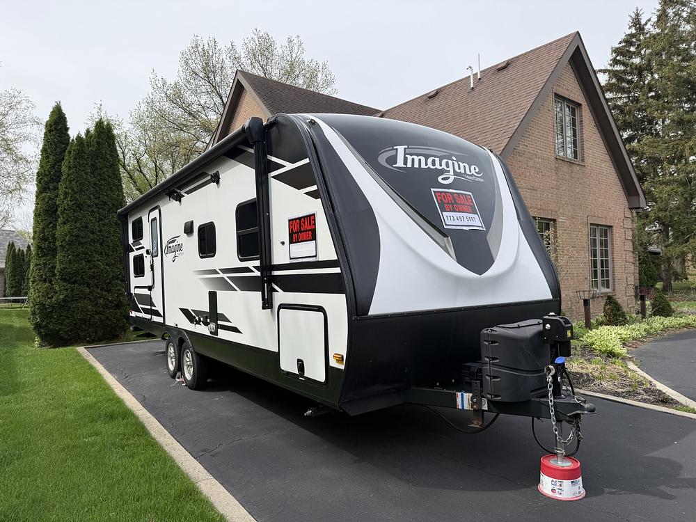 The 2020 Grand Design Imagine 2400BH is a top-of-the-line travel trailer that offers both luxury and functionality for your next camping adventure. With its sleek design and spacious interior, this model is ideal for families or couples looking to experience the great outdoors in style. The Imagine 2400BH boasts a well-appointed kitchen with modern appliances, a comfortable living area with ample seating, and a private bedroom for a restful night's sleep. The bathroom is equipped with a shower, toilet, and sink for added convenience. Outside, you'll find a power awning for shade on sunny days and exterior speakers for enjoying your favorite music while lounging outside.
