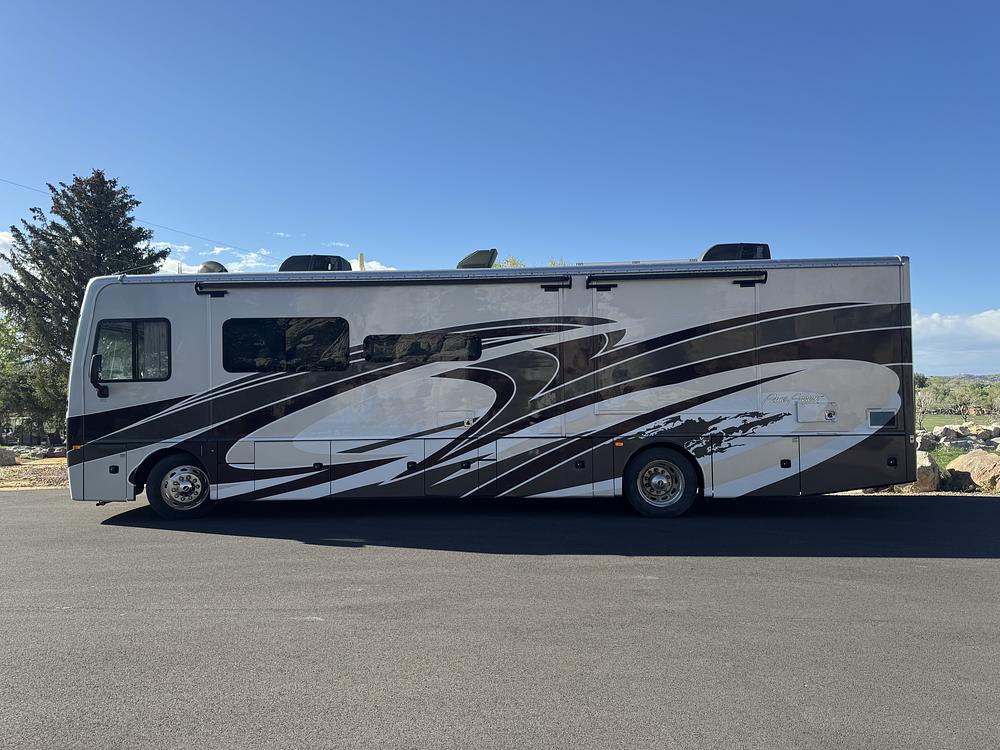 35 ft Class A diesel pusher, Cummins 6.7 L, Freightliner chassis - runs great, tows easy. Rear bunks, big slides, master bed, full kitchen, sleeps 8-9. Power awning, basement storage, new wheels, new toilet. Quick note: Small cosmetic scrape on left rear quarter and crack in windshield, does not obstruct view, priced accordingly.