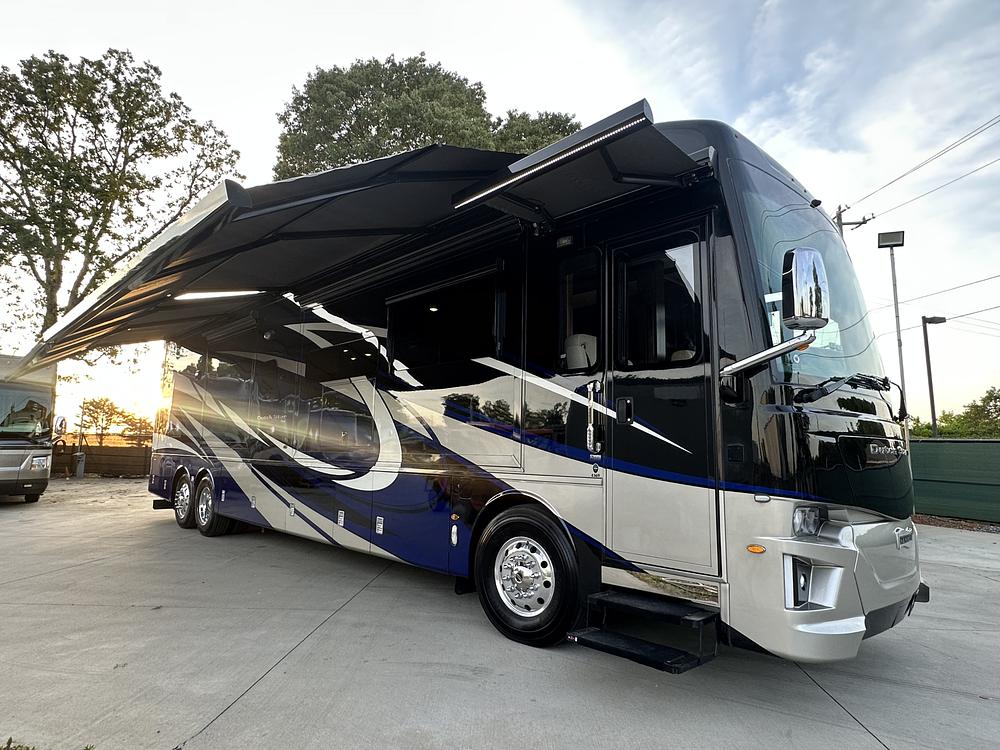 2021 Newmar Dutchstar 4369 recently serviced. Bath and a half, heated tile, three slides including one full wall slide on driver side. 15k lb towing capacity, electric power reel, outside TV as well as outside sliding Dometic.